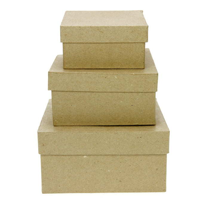 Set of 3 Kraft Paper Mache Boxes: Square Medium