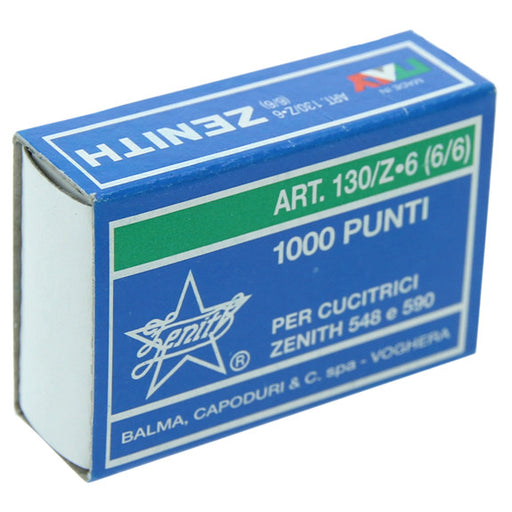 ZENITH1000 staples, 6/6.Zinc plated wire, sharp staples.Staples are described as X/Y (e.g. 24/6 or 26/6), where the first number X is the gauge of the wi...