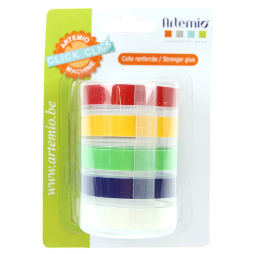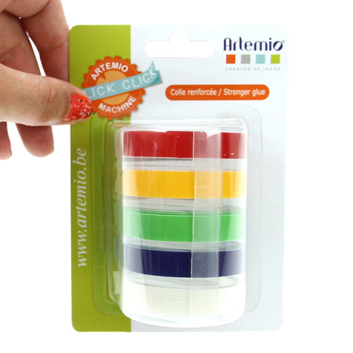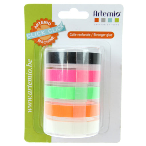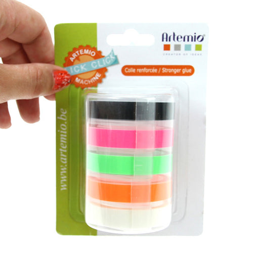 Artemio5 rolls of adhesive label tape. Assorted colours. 9mm x 2m. Red, yellow, green, blue and white.