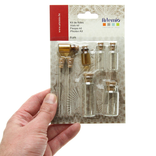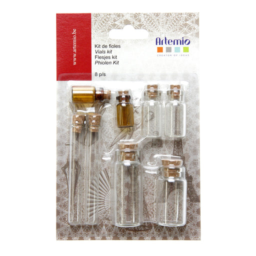 ArtemioSet of 6 glass vials with cork stopper measuring approximately 6.2 cm x 2.2 cm.