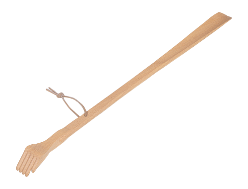 RedeckerOiled beechwood shoe horn with a handy back scratcher at the other end! It also comes with a leather strap.Length: 59cm