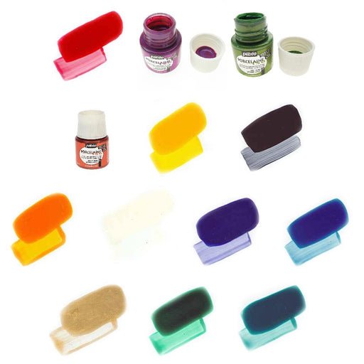 PebeoPorcelaine 150, a range of 46 intermixable colours for painting on porcelain, china etc. that can be hardened in a domestic oven. 45ml bottles.