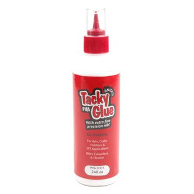 Anitas Tacky Glue 60ml - Acid and Lignum Free. Anitas tacky glue is a high quality PVA glue for all craft applications. The glue is white when applied but dries clear.