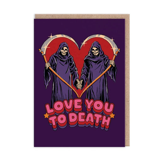 Steven RhodesLove You To Death Greeting Card (A6)A darkly sweet twist—Stephen Rhodes crafts everlasting devotion with a dash of macabre fun.Envelope: Brown Kraf...
