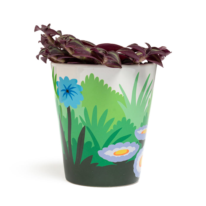 Custom printed ceramic plant pot, featuring an assorted flower artwork by Hammo to match our display in Stevenson Square outside our Manchester store, celebrating the RHS Urban Show making its home in Manchester for 2024. There are two designs available.