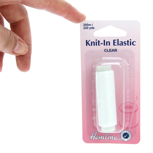 Clear elastic thread for knitting and crocheting. Helps tighten knitwear such as socks and sweaters. Perfect for use when knitting ribs and cuffs