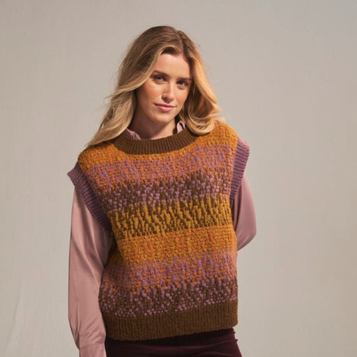 SirdarThe Volcanic Vest features stunning colour combining in an updated silhouette with straight armholes finished with tapering ribs. Designed to knit ...