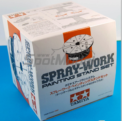 Airbrush and spray painting stand set with two easy to use stands. 16cm diameter turntable comes with spring clips and features holes of various sizes to securely hold model parts. Adjustable body stand. Both stands employ a simple rotating base.