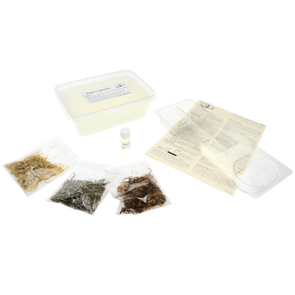 Making soaps from natural ingredients has become a fast growing pastime. This kit contains a comprehensive range of materials to make a delightful selection of individual handmade soaps. Contents: soap compound, fragrance, marigold petals, cut lemon grass, irish moss, 3 soap moulds, pipette, instructions.