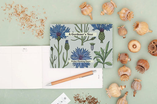 Studio Wald- Dusky blue cornflower illustrations inspired by a vintage scientific botanical aesthetic.- Open dated month-to-view gardening diary lasts one yea...