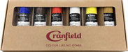 A set of six 40ml tubes of Cranfield's excellent quality artists oil paints. With a closely controlled milling process and the best pigment quality, these paints are made with care in south Wales. The set includes six essential colours: French Ultramarine Blue Red Shade S1, Burnt Umber S1, Napthol Vermillion S3, Titanium White (Linseed) S1, Yellow Ochre S1 and Bright Yellow Lake S1.