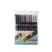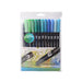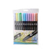 Brush Pen with two tips. The fine tip is mainly used when drawing exact lines. The second tips are thicker and flexible like a brush. Water-based – colours can be mixed and used as watercolours. Perfect for creating cards, producing motifs, sketching, drawing comics, illustrating and much more. These pens are odourless. Colours are not light-resistant.