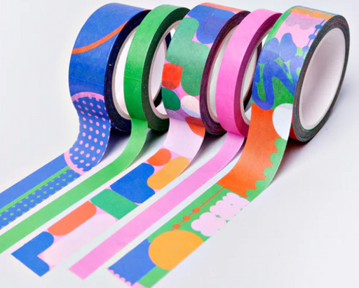 What's better than 1 roll of washi tape? A set of 5 rolls of washi tape! This set features an abstract modern prints in pop colours and comes packed in a cardboard box (plastic free!) Perfect for all your bullet journalling or decorative paper needs.