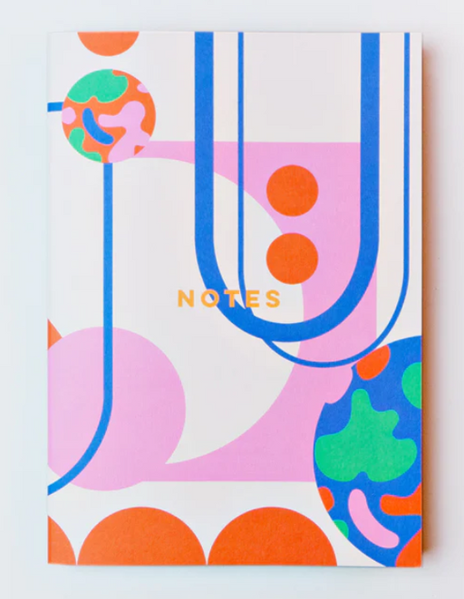 This is a super luxe notebook with an abstract architectural Vertigo-inspired print on the cover. The cover is 300gsm card, and the inside cover is a contrast pop pink colour. An extra detail for stationery nerds ? the spine has lovely white wire binding.? Lined inside.