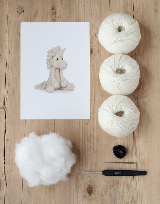 Each boxed kit includes everything needed to complete the project: luxurious pure wool DK yarn, crochet hook, needle, premium toy stuffing, and a pattern with a QR video link for lessons on all the techniques.