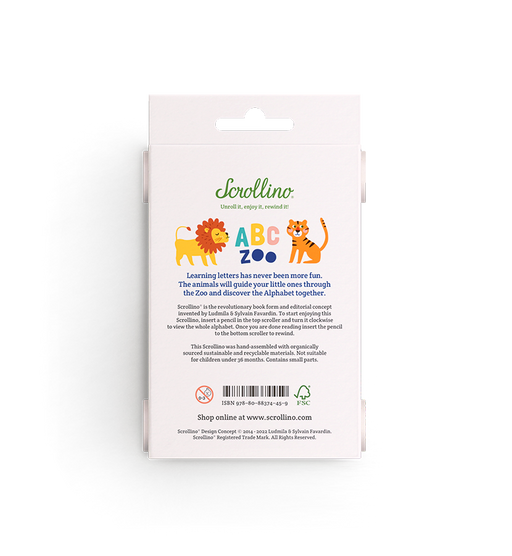 Learning letters has never been more fun. Thanks to this beautifully illustrated Scrollino, the animals will guide your little ones through the ZOO...