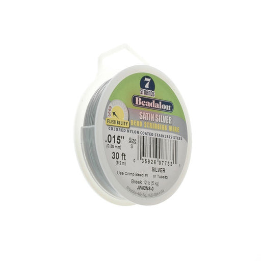BeadalonCraft Series bead stringing wire. Satin silver. 7 flexible strands, nylon coated stainless steel. Diameter 0.38mm (.015"), can hold up to 5kg (12lb...
