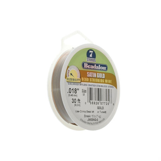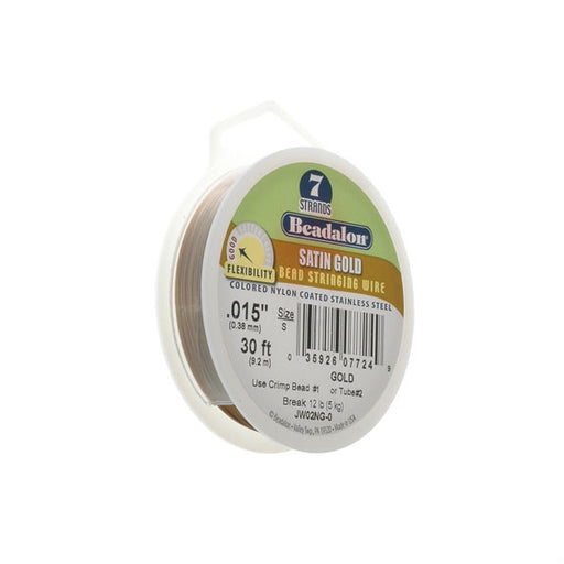 BeadalonCraft Series bead stringing wire. Satin gold. 7 flexible strands, nylon coated stainless steel. Diameter 0.38mm (.015"), can hold up to 7kg (15lb)....