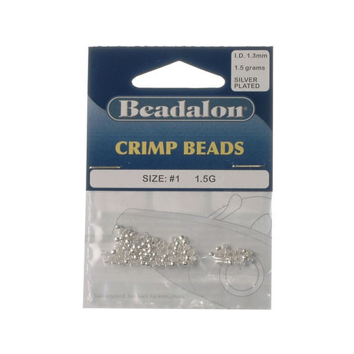 BeadalonCrimp beads. Size #1 (2.0mm, inside diameter 1.3mm) - 1.5g. Silver plated.