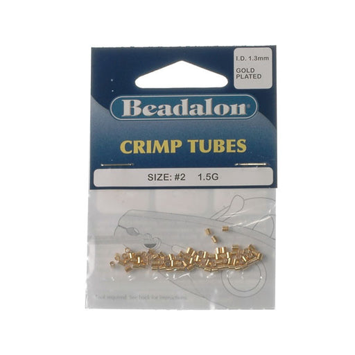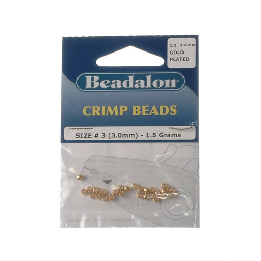 BeadalonCrimp beads. Size #3 (3.0mm, inside diameter 1.6mm) - 1.5g. Gold plated.