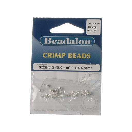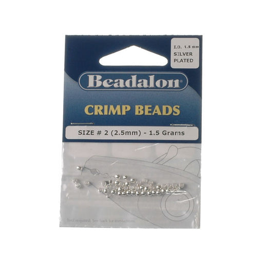 BeadalonCrimp beads. Size #2 (2.5mm, inside diameter 1.5mm) - 1.5g. Silver plated.