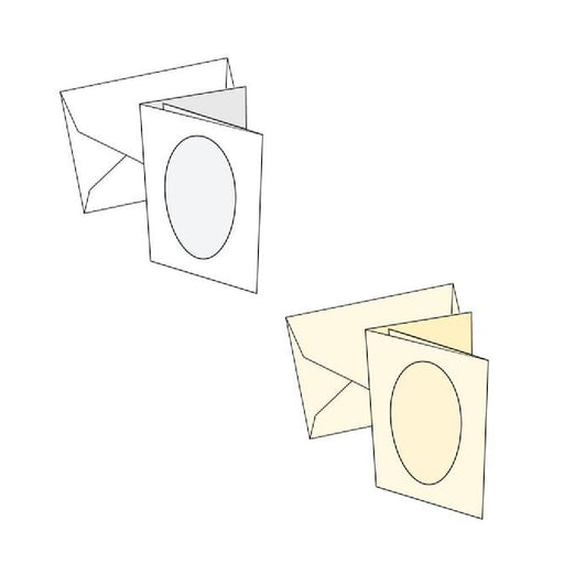 74mm x 103mm when folded, 280 gsm (380 micron) double fold, 3 panels, ivory card blanks complete with 83mm x 112mm cream envelopes. With oval apert...