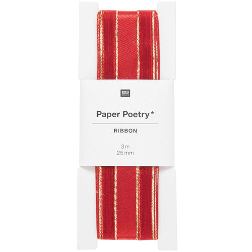 RicoOrganza Ribbon, Red/Gold, 25 mm x 3 m