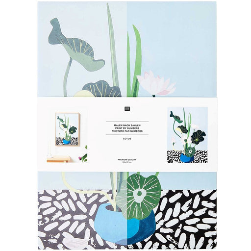 RicoPaint by numbers set, Lotus, 26 x 37 cm, FSC 100%, Contents: 1 painting board, 16 acrylic colours, 3 brushes, 1 painting palette