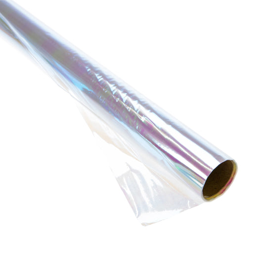 3.8m x 914mm - This transparent film reflects light to produce a range of shimmering colours. Works well to represent water, ice, smoke and fairy wings.