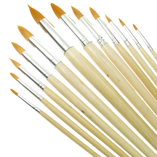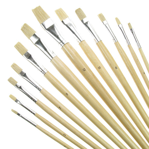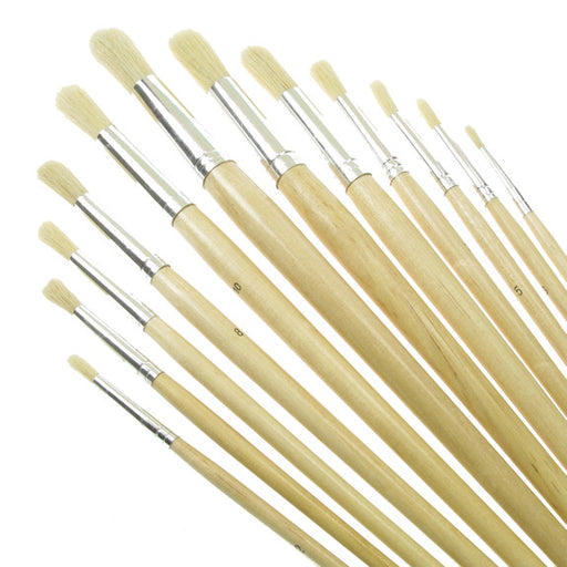 8 round and 8 flat long handled hog hair brushes sizes: 1, 2, 3, 4, 5, 6, 8 and 10