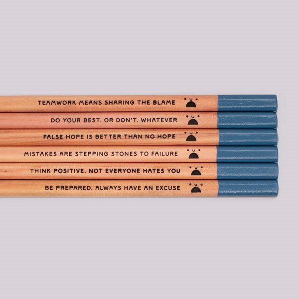 6 cynical HB pencils each with a different message: