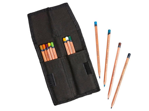 Empty Derwent pencil case with ring binder for 132 pencils and space for accessories such as an eraser and/or sharpener. The elastic holders allow you to store pencils of different thicknesses. The pencil case is large enough to carry an A5 sketchbook! Includes 3 pencil leaves for 44 pencils each. Equipped with zipper, handle and shoulder strap.