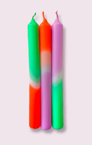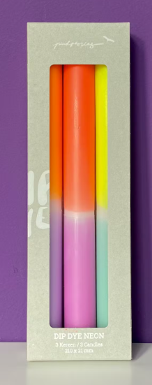 Set of three lovingly hand-colored neon-look candles. The colors remain the same, the patterns vary with each candle and make them special and unique.