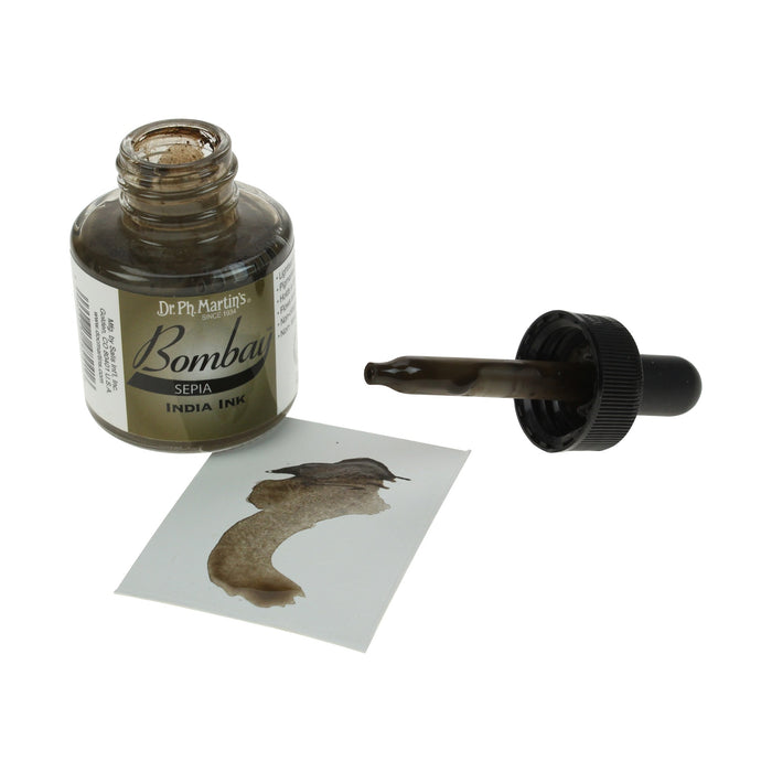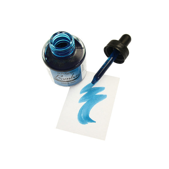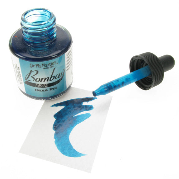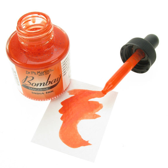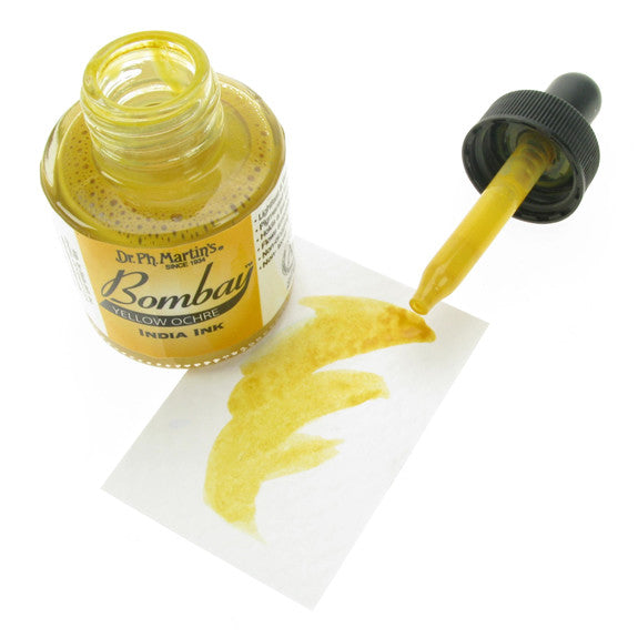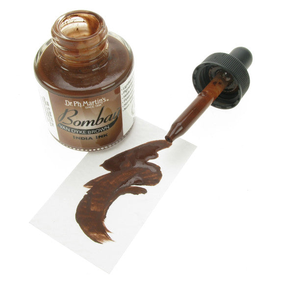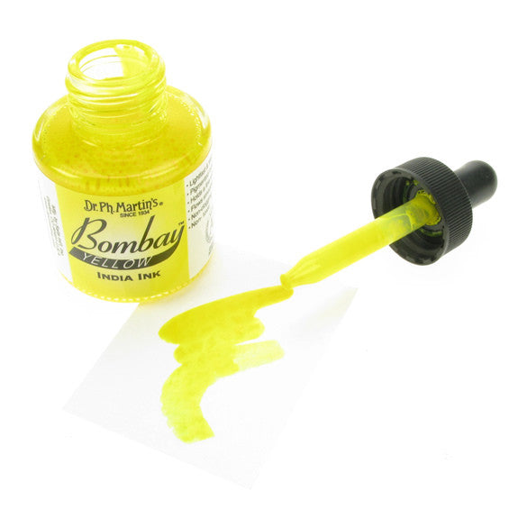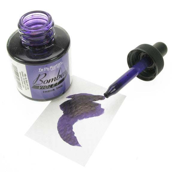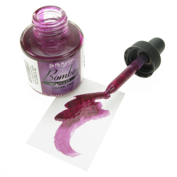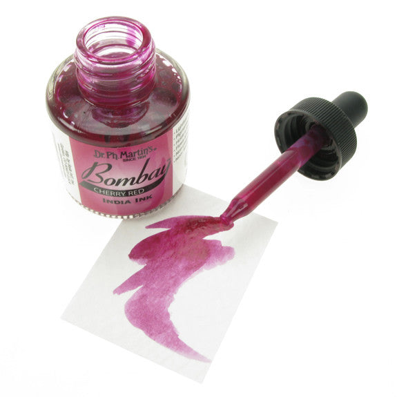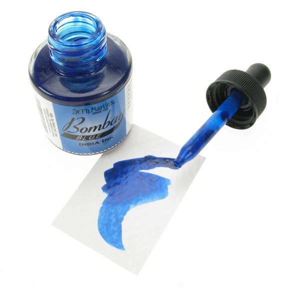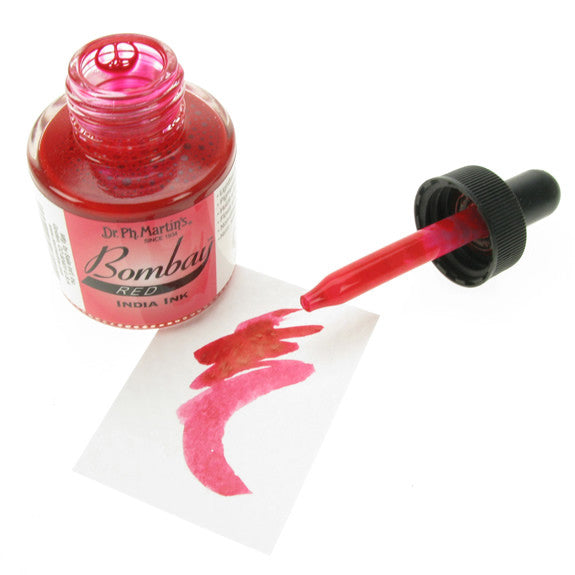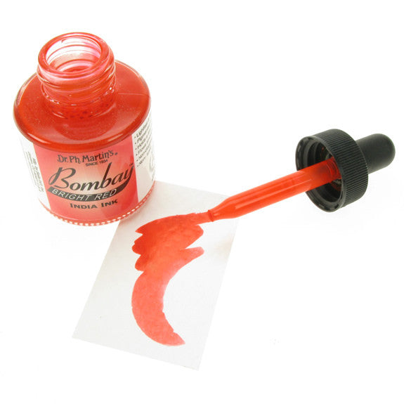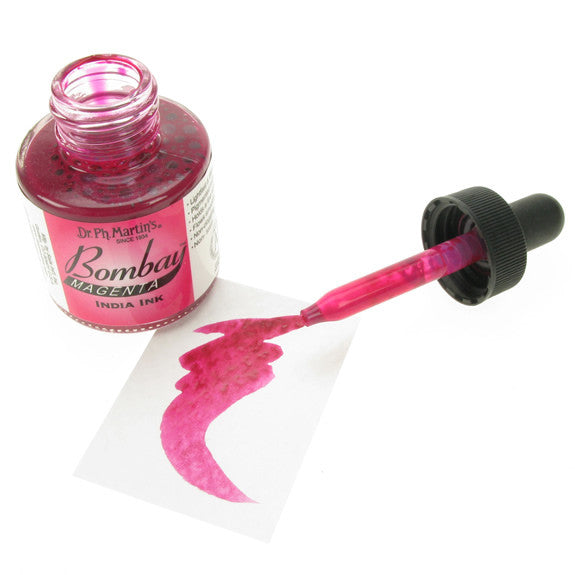 Dr. Ph. Martin's Bombay India Inks offer powerful colour in a convenient dropper-stopper glass bottle. These highly pigmented India inks not only remain lightfast and permanent, but are also totally waterproof when dry. They adhere to nearly all surfaces and are non-clogging when used in pens. Inks can be diluted with water and used with brushes in traditional watercolour techniques or in dip pens, technical drawing pens, and airbrushes. All colours are brilliant and transparent, except Black and White, which are opaque and have excellent covering power. 30ml Bottles.