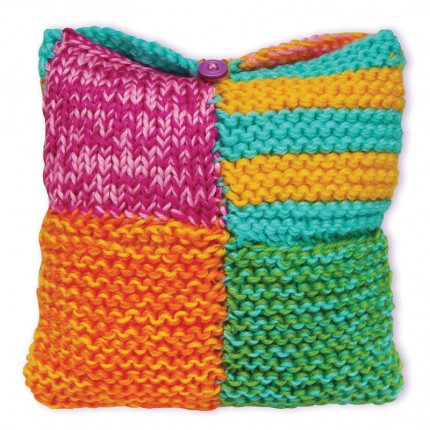 Contents: 1 pair of knitting needles (6mm), 1 plastic sewing needle, different coloured yarns, 4 buttons and detailed instructions. Contents are sufficient for making 1 mini handbag and 1 mini pouch or a cushion cover.