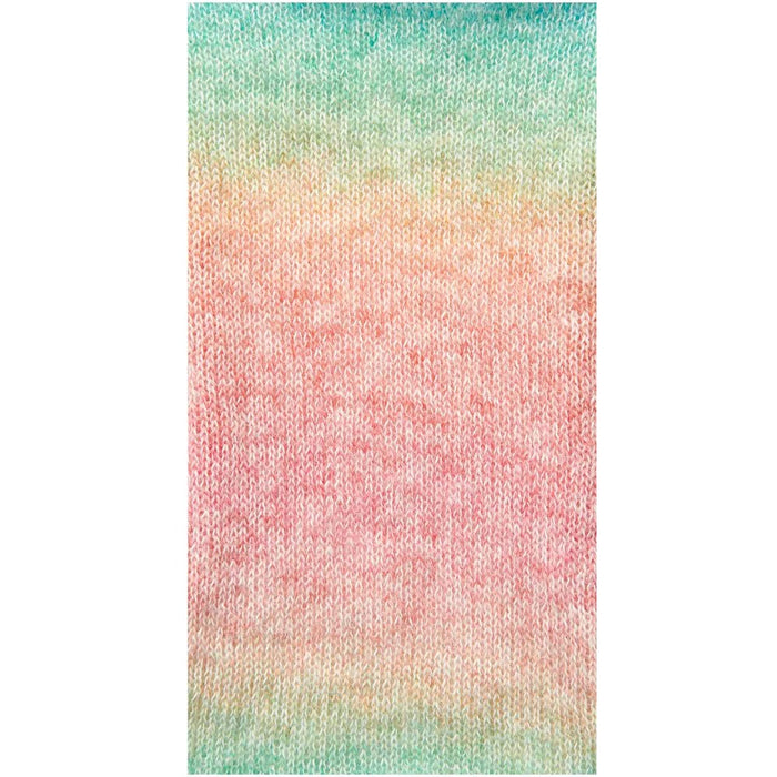 In Fashion Mohair Rainbows, long mohair fibres are worked into a thin wool thread. The long, dense fleece fibres make the knitted pieces voluminous and super soft. Fashion Mohair Rainbows can be used to knit accessories such as scarves and shawls as well as tops. The soft colour gradient gives the yarn its characteristic look. The mohair blend is available in different colours, from pastel to strong and dark shades.