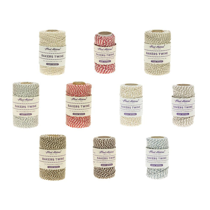 Bakers Twines are manufactured in 100% natural soft cotton. Approximately 1.5mm thick.