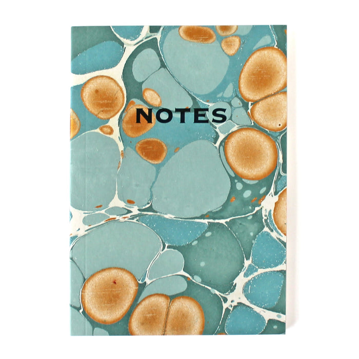 Notebook with an original marbled print in sea greens & gold ink on hand made paper.