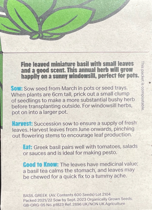 Greek basil pairs well with tomatoes, salads or sauces and is ideal for making pesto.