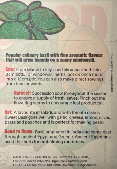Popular culinary basil with fine aromatic flavour that will grow happily on a sunny windowsill.