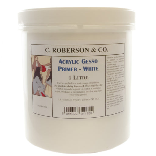 Fast drying and flexible white primer for oil or acrylic paints. Gives a slightly absorbent surface that can be sanded smooth once dry. Made with high-quality acrylic resins and pigments.