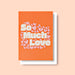 Sweet but make it stylish. This playful card features bold cream text saying “So Much Love,” surrounded by a scatter of hand-sketched hearts - each with a cheeky little smile. It’s got just the right balance of cute and cool: enough charm to melt hearts, but designed with a graphic edge so it never feels saccharine.