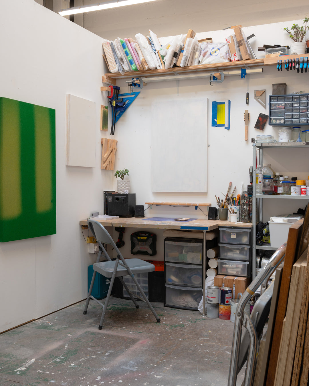 I got really lucky with my studio here at Gloam. I have a huge double-height space with a glass roof, so there is lots of bright natural light, which I don't think I could live without now. There are 10 artists here in total, but I share my immediate space with Rose Hedy Squires, Victoria Emily Sharples and Jonny Davey, 3 great friends and wonderful artists. The gallery sits in a great location within Sheffield's Cultural Industries Quarter and puts on regular exhibitions in its gallery space as a voluntary artist-led organisation.