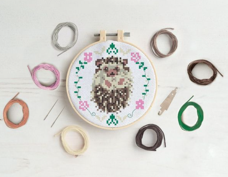 Kit Includes: Plastic Hoop, Thread, Stitching Fabric, Needles, Threader, Instructions