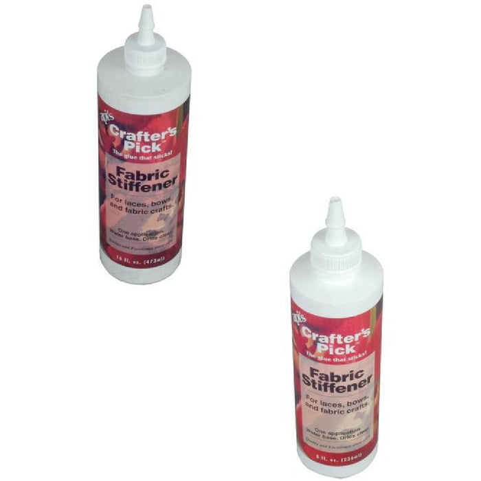 Crafters Pick Fabric Stiffener. Gives A Permanent Bond To Fabrics, Is Washable, Flexible & Dries Clear. Will Not Stain Most Fabrics. May Be Hand Washed One Week After Finishing Project.