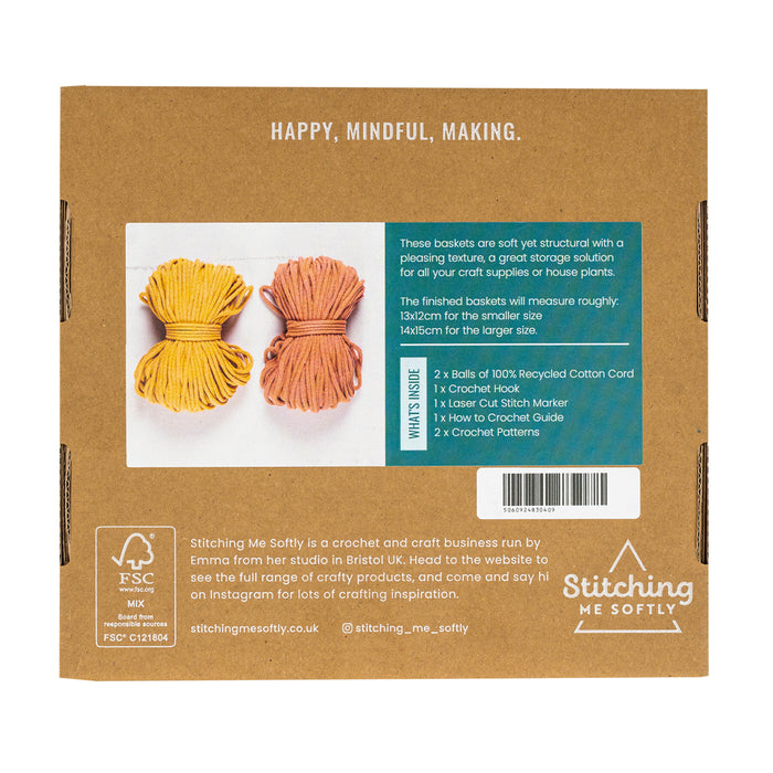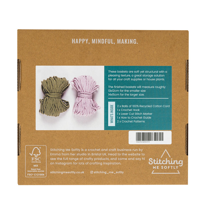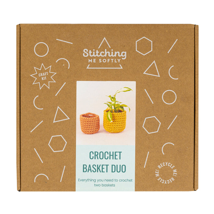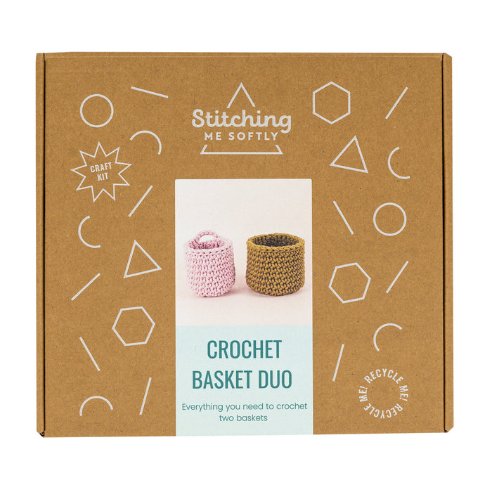 Add some handmade accessories to your home using the Crochet Basket Duo Kit. Made using 100% recycled cotton cord that creates a lovely tactile texture when crocheted into a basket.