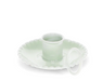 Cast metal candle holder with light grey enamel finish, made to resemble a chamberstick with its attached handle and small pan to catch dripping wax. Its simple design and striking colour gives a modern twist to a classical item, and will look great on any dining table or bedside table.