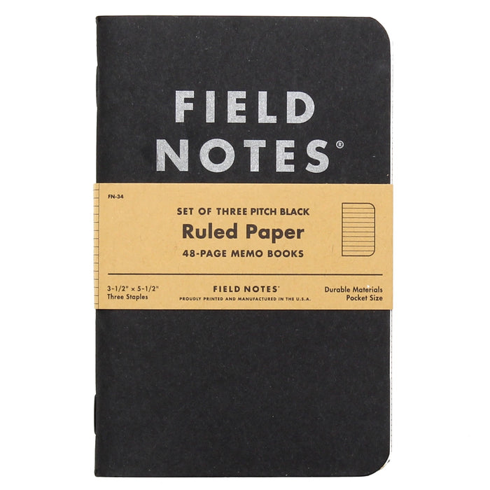 FIELD NOTES Pitch Black 3-Pack Memo Books Ruled