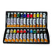 The colours included in this set are as follows: Lemon Yellow, Primary Yellow, Cadmium Yellow Deep Hue, Cadmium Orange Hue, Vermilion Hue, Cadmium Red Hue, Primary Red, Permanent Rose, Violet, Ultramarine Blue, Coeruleum Blue, Primary Blue, Emerald Green, Hookers Green, Buff Titanium, Portrait Pink, Yellow Ochre, Burnt Sienna, Burnt Umber, Black, Titanium White, Silver Imit, Gold Imit and Pearl Black.