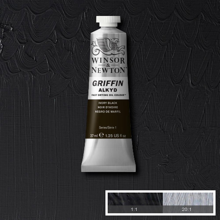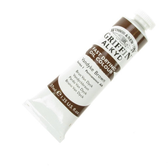 Griffin Alkyd Fast Drying Oil Colour is manufactured from pigments suspended in oil modified alkyd resin and solvent, the most outstanding advantage of the Griffin Alkyd range of colours is their speed of drying, which allows a painting to be completed in a single session. The clarity of the alkyd resin allows the full brightness of the pigment to show when the colour is dry. Their unique luminosity make them an ideal choice for glazing techniques, particularly in conjunction with Liquin medium, thereby creating a speedier process than with oils. Many artists underpaint in alkyds to save time, subsequently completing their painting in traditional oils. In addition, Griffin Alkyd is highly recommended for use on a variety of porous surfaces and especially for work that is to be exhibited out of doors and on fabric. Compatible with conventional oil colours, Griffin Alkyd Colours have good flow properties and dry to a hard durable film.